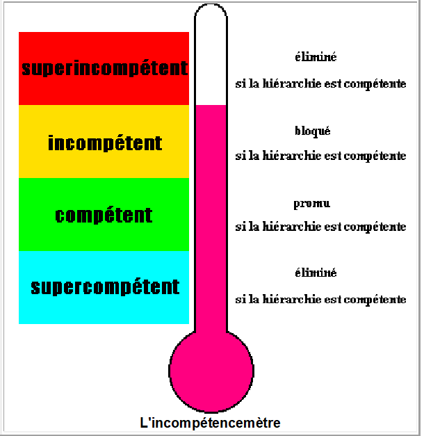 Dans une hiérarchie dont l'autorité suprème est compétente, tout employé à tendance à s'élever à son niveau d'incompétence